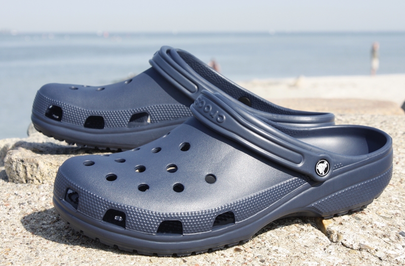 • blaue Crocs